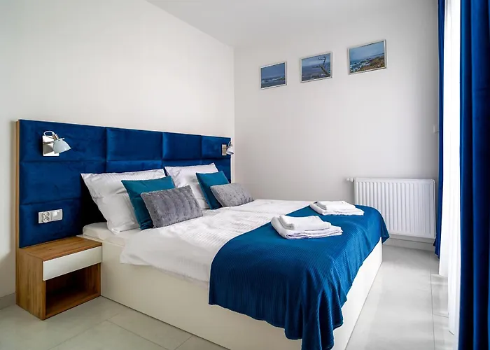 ベッドルーム1室のDeep Blue Lagoon 350M Od Plazy! Klimatyzacja Parking, Netflix, 2 Pokoje グジボボアパートはコウォブジェク灯台から約6kmに位置し、中庭の景色を一望できます。